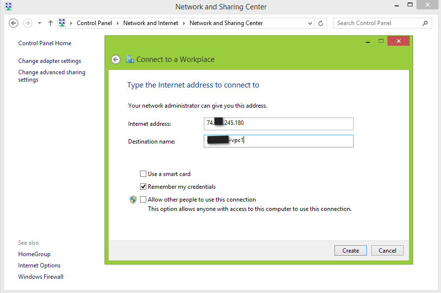 Following instruction have been perform using Windows 8.1 using Native VPN client.